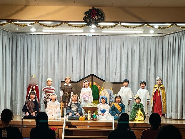 みんなで聖劇をしました。イエス様がお誕生になられた嬉しい出来事を知らせるためです。