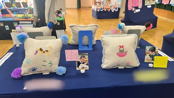 年長さんの個人作品です。クロスステッチは難しいことです。でも「やってみたい」が「できる」「できた」に変わります。できた時の喜びは大きかったことでしょう