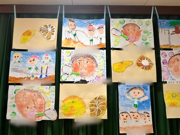 年長さんの絵画です。細かいところまでよく見て描きました。