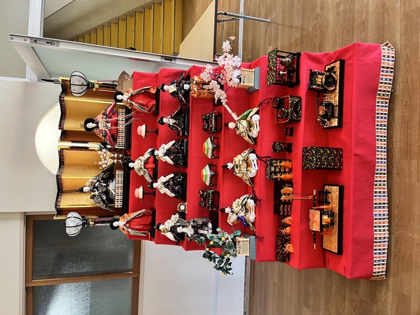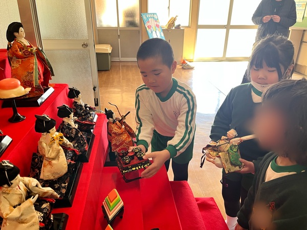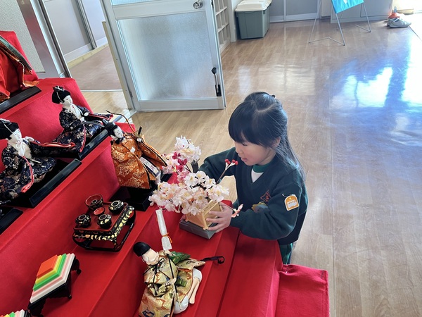 ひな人形を飾りました。年長さんのお友だちがお手伝いをしてくれました。