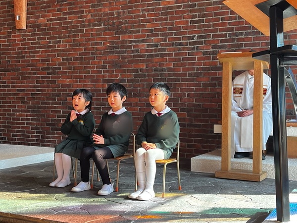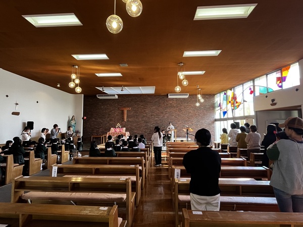 七五三のお祝いを教会でしました。聖堂に入るときは手を合わせて静かに入ります。
