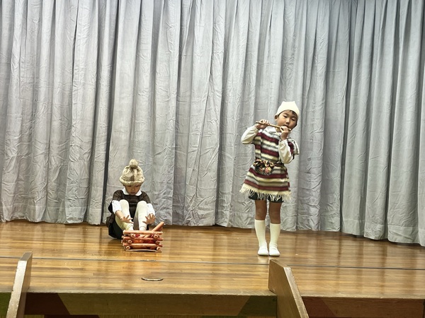 お楽しみに先生たちがハンドベルや鉄琴でクリスマスのお歌を演奏してくれました。きれいな音色にみんなも一緒に歌います。。