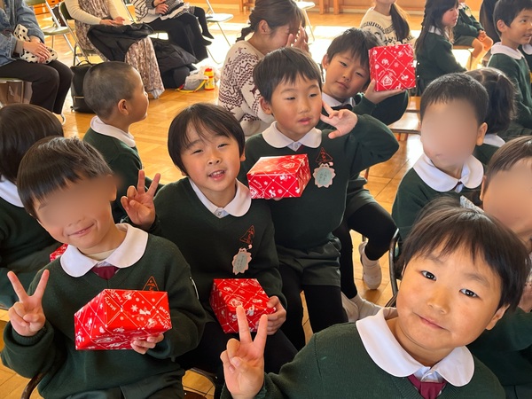 サンタさんがプレゼントをもって幼稚園に来てくれました。みんな大喜びです!!