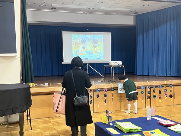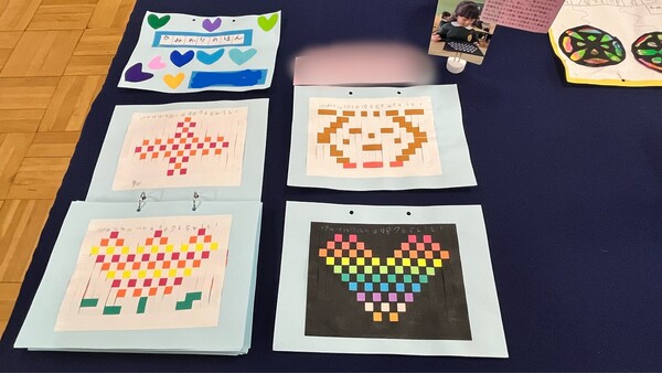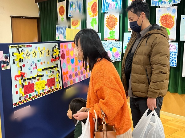 展示会をしました。1年間、がんばったお仕事や製作、絵画を見ていただきました。