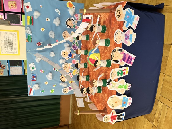 みんなで力を合わせたおかげで、きれいに飾ることができました。年長さん、ありがとう!!