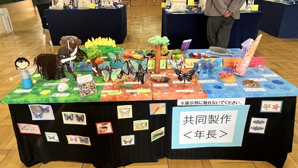 「生命の歴史」を学び地球が誕生してからどのような生き物が生きていたのかを知り作品にしました。使う材料も自分たちで考えこだわりを持って製作しました。