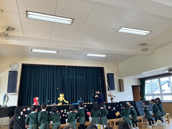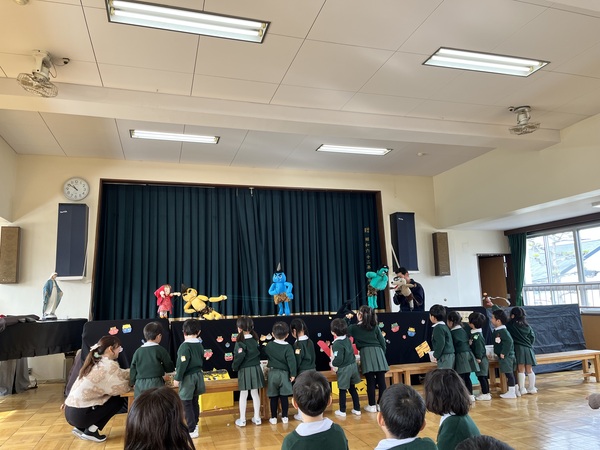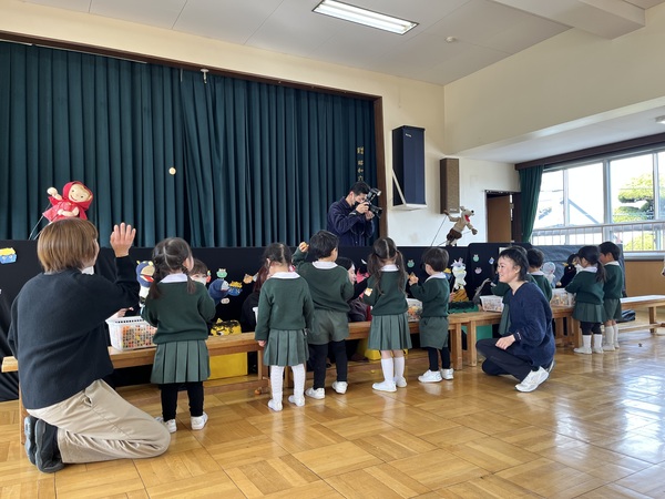 最後にみんなで「神様からのおくりもの」を歌い豆まきは終わりました。人形劇サークルのお母さま方、楽しい豆まきをしてくださりありがとうございました。